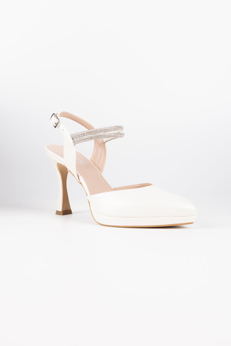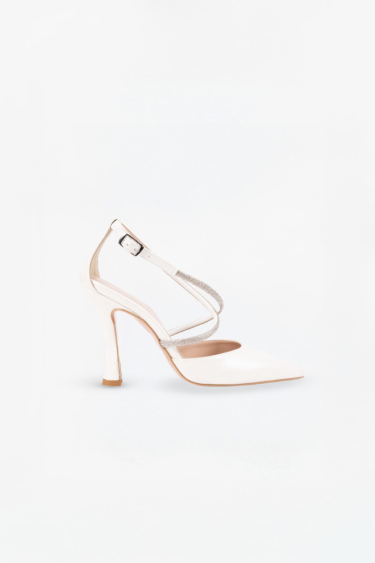 Shoes and Lemons Noemi Pearl White Heels with Crystal Straps