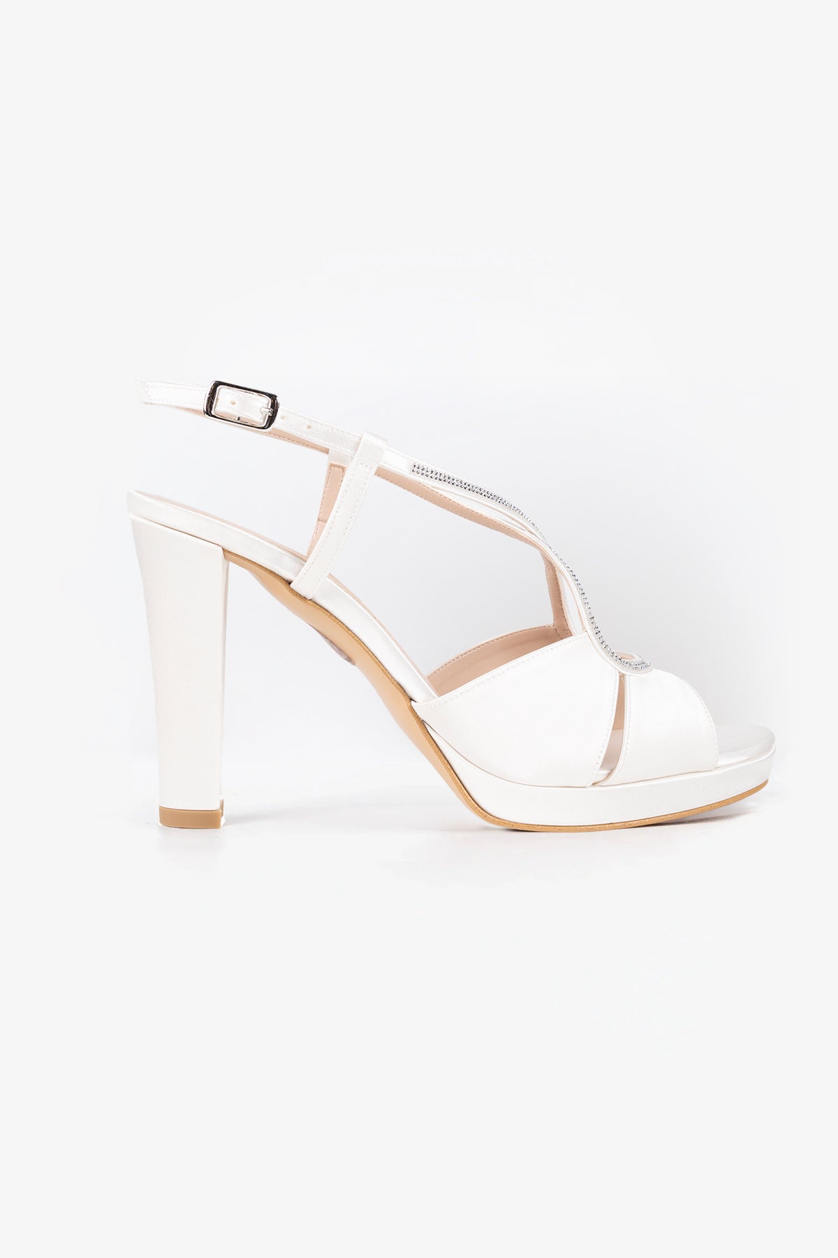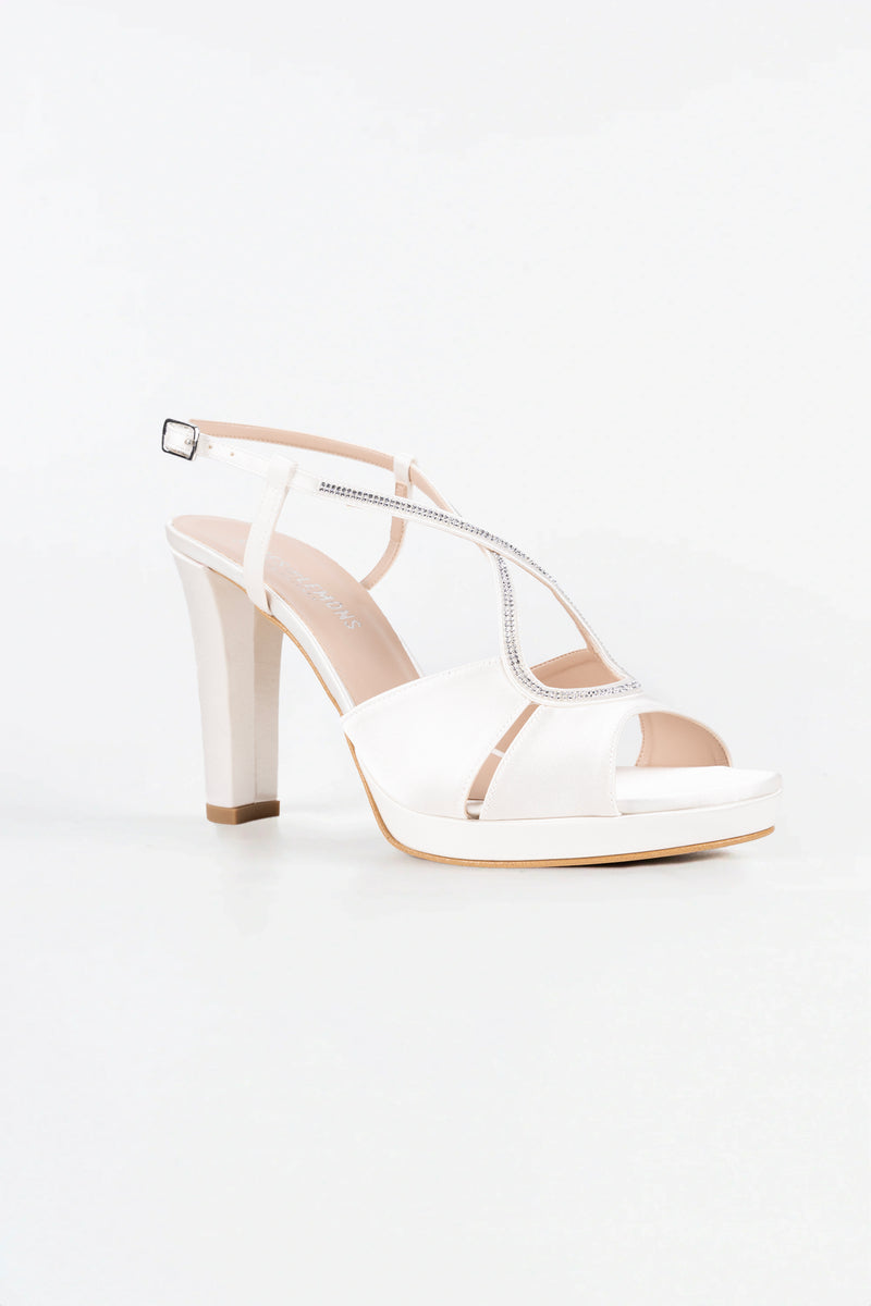 Shoes and Lemons Bella Off-White Satin Bridal Sandals with Swarovski Detail